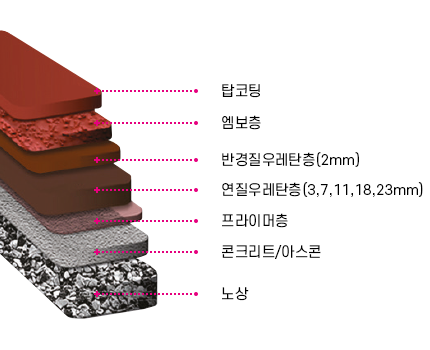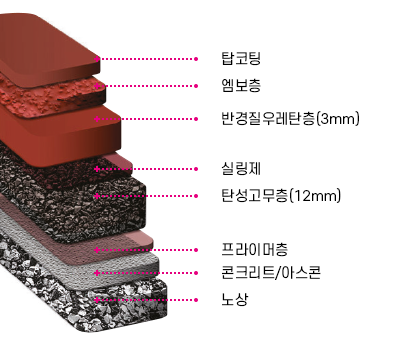 ※ 육상 경기장에서 선수들이 장시간의 운동 뒤에도 피로감을 덜 느낄 수 있고 내구성과 충격 흡수성이 뛰어난 경기장 바닥재입니다.